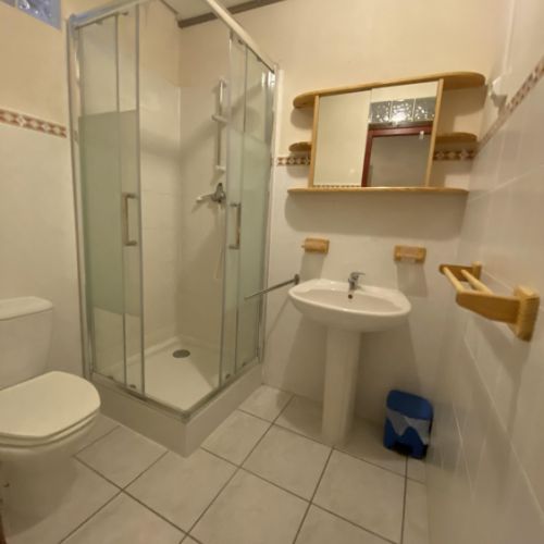 • une salle d'eau avec douche, lavabo, W.C