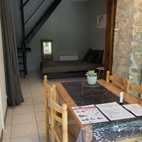 Ce gite lumineux, simple et fonctionnel, ouvert par une large baie vitrée sur la terrasse, est une ancienne cuve à vin. Il est composé de 4 espaces sur 2 niveaux et d’un équipement complet.