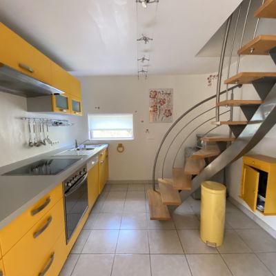 • une cuisine moderne et pratique, équipée avec un lave-vaisselle, une table de cuisson en vitro-céramique 4 feux, hotte, four multifonctions, micro-onde, grand réfrigérateur avec compartiment surgélation, bouilloire électrique, cafetière électrique, grille pain, vaisselle et ustensiles de cuisine....