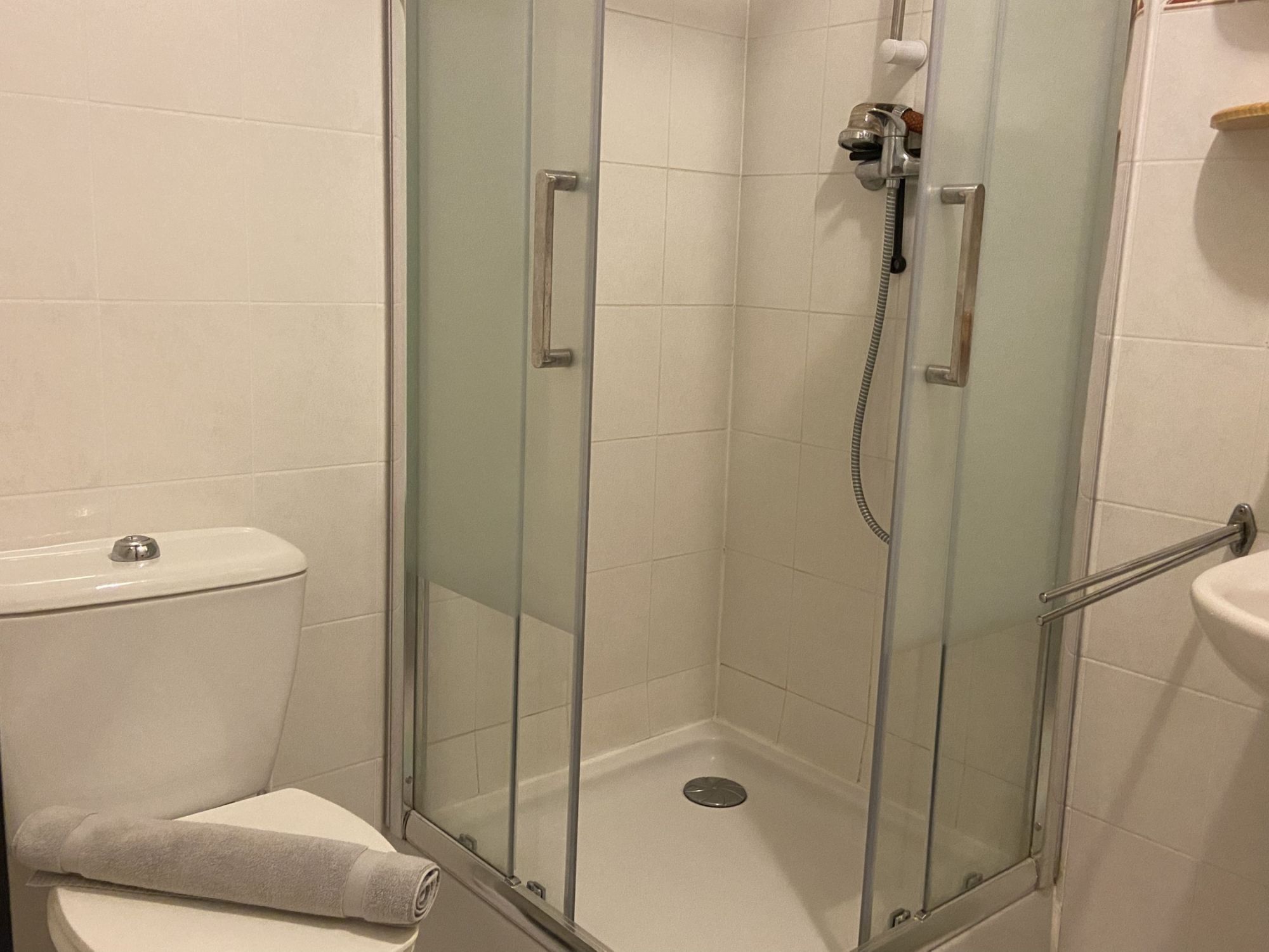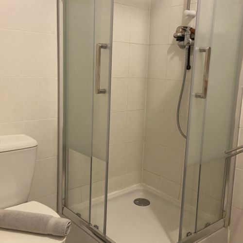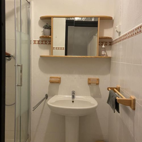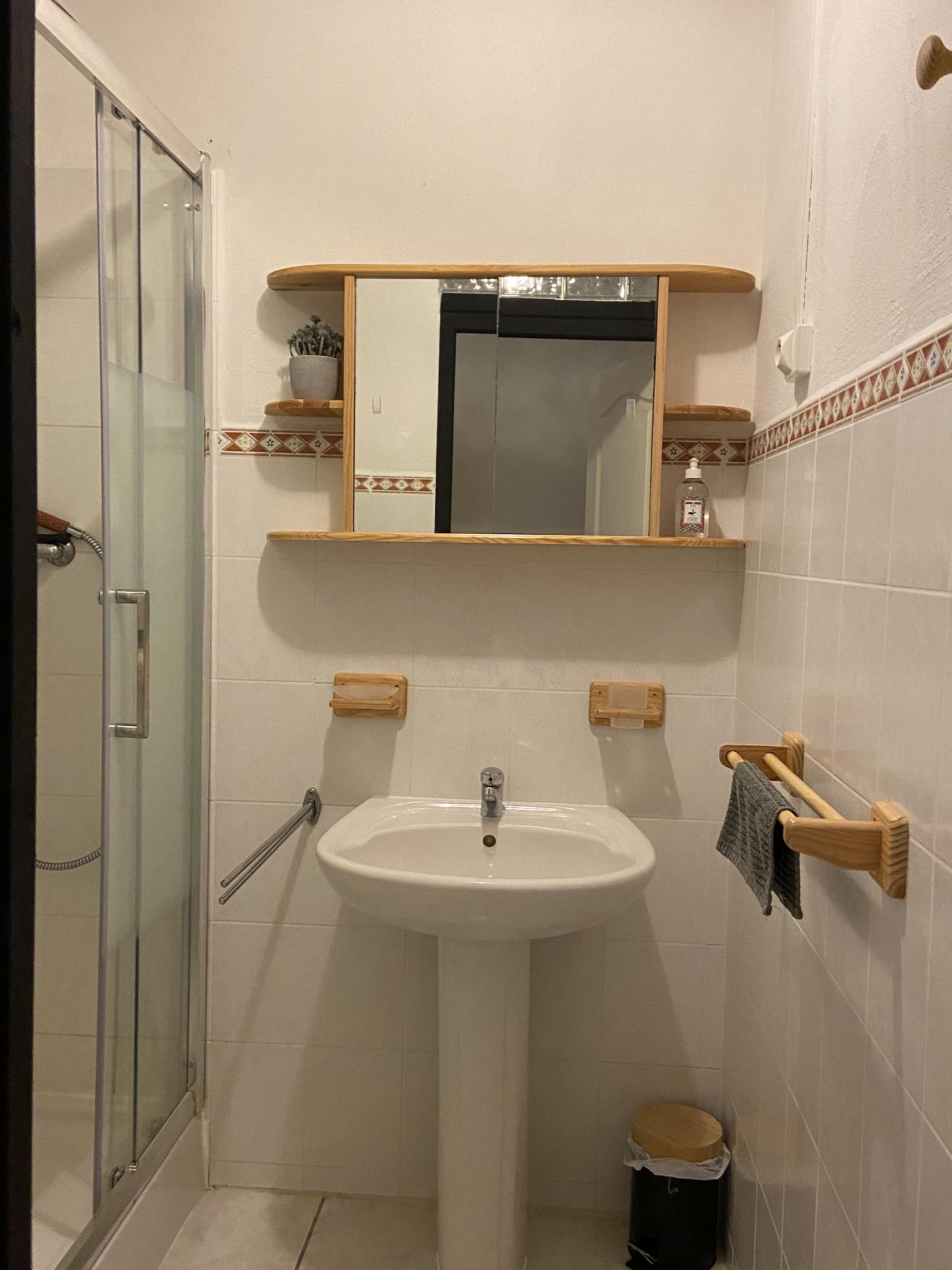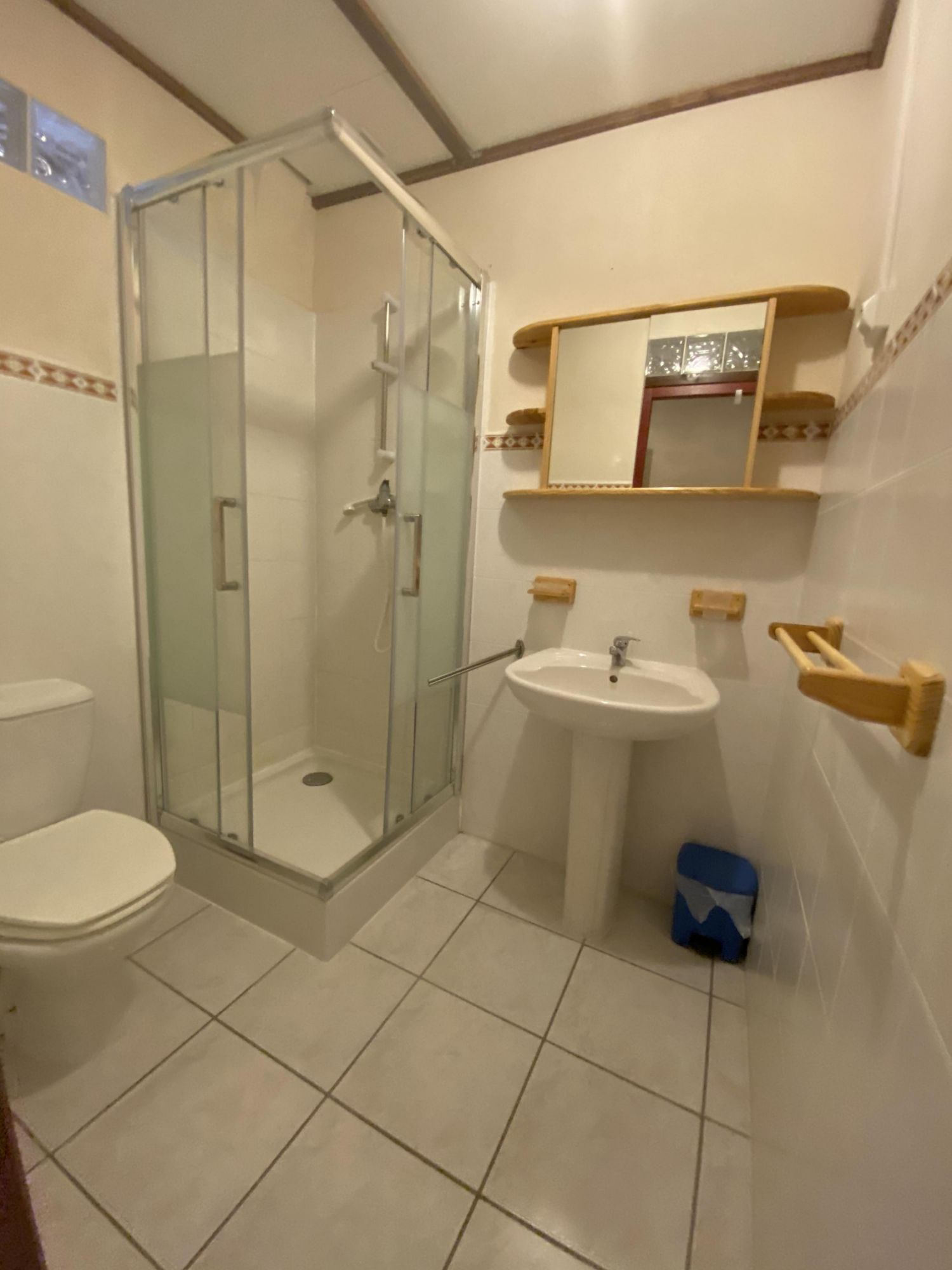• une salle d'eau avec douche, lavabo, W.C