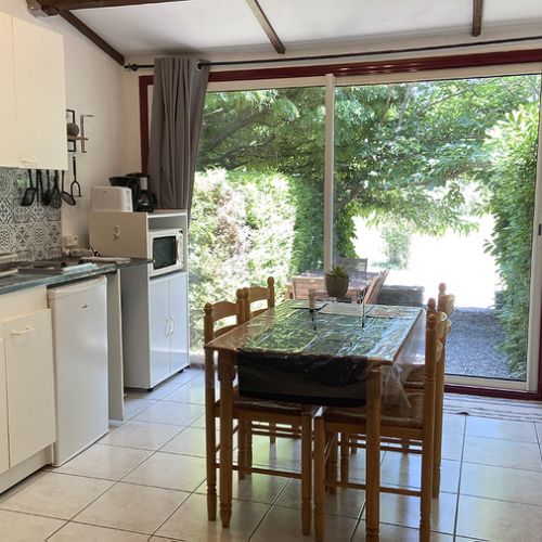 Ce gite lumineux, simple et fonctionnel, ouvert par une large baie vitrée sur la terrasse, est une ancienne cuve à vin. Il est composé de 4 espaces sur 2 niveaux et d’un équipement complet.