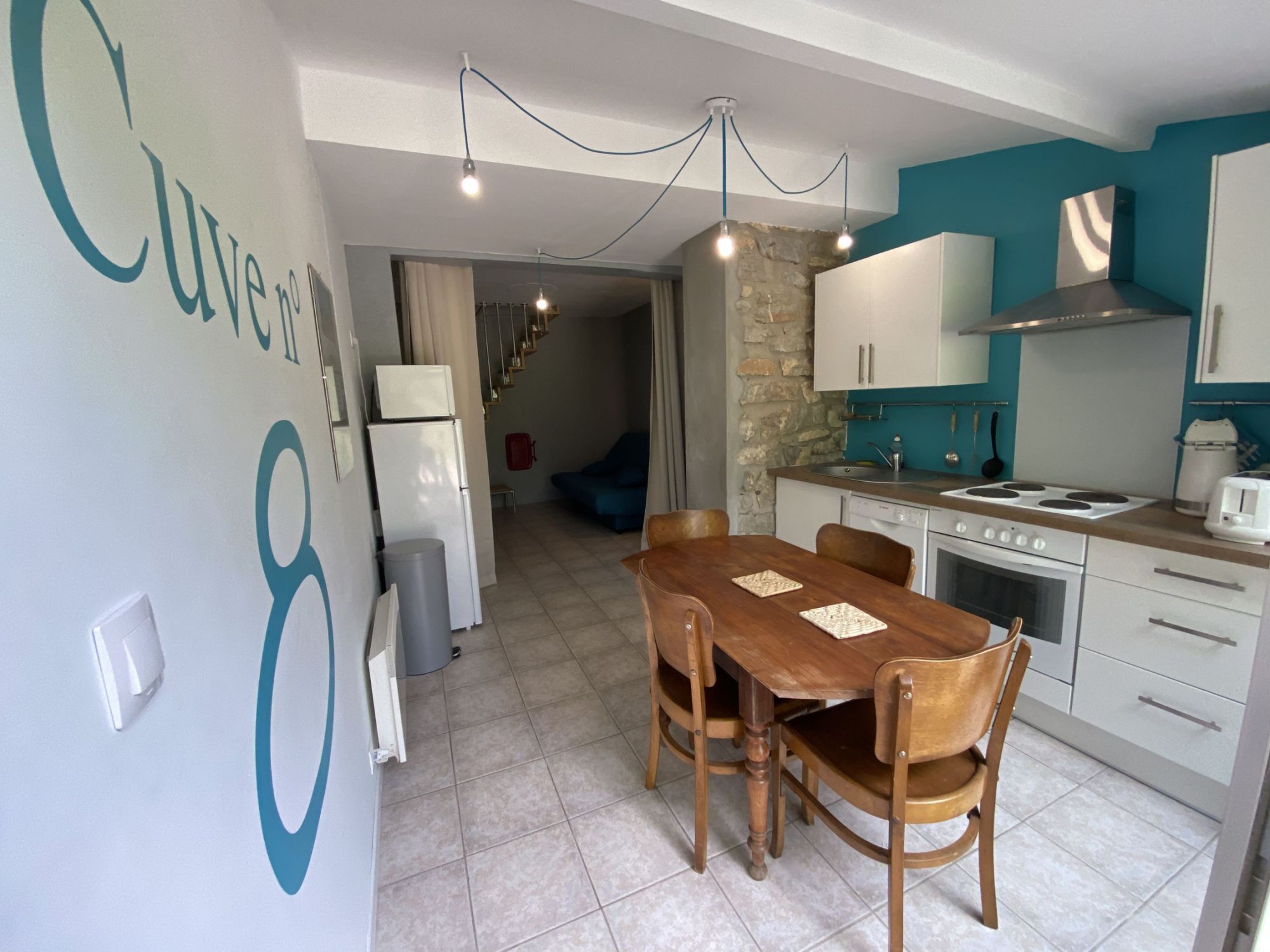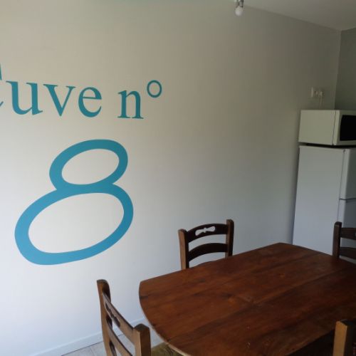 Ce gîte coquet a un niveau de confort élevé et peut accueillir un couple ou une famille. Sa décoration élégante et originale valorise le caractère de l'ancienne cuve à vin. Il est composé de 4 espaces sur 2 niveaux et d’un équipement complet et de nombreux rangements.