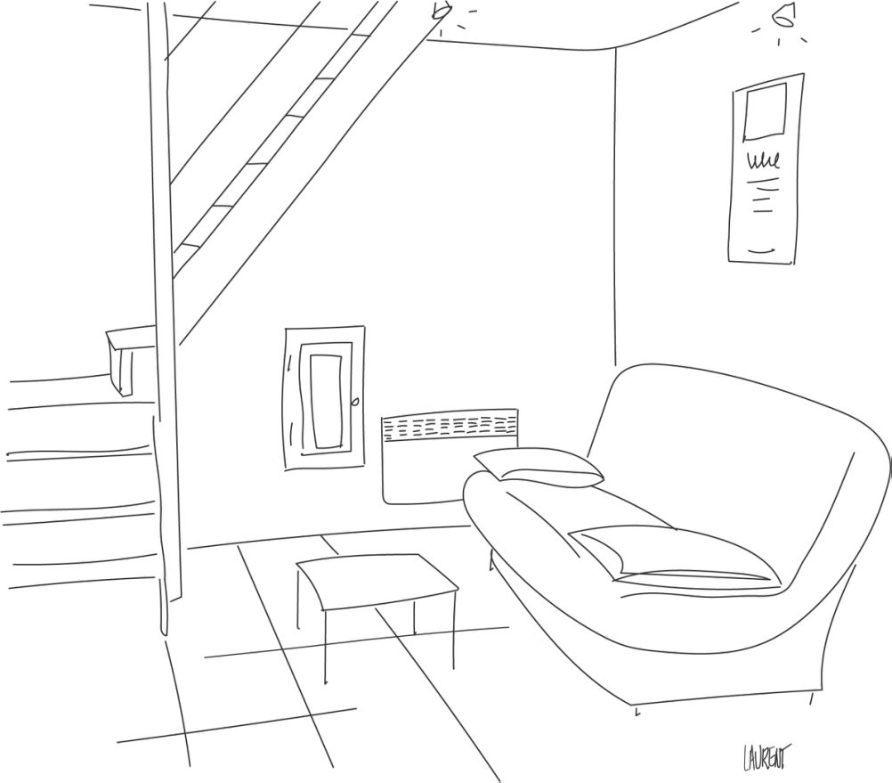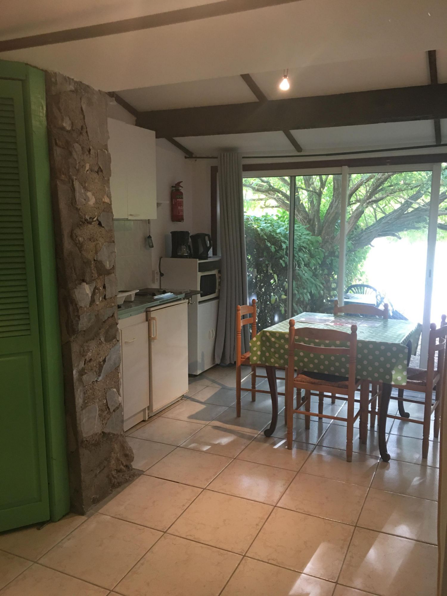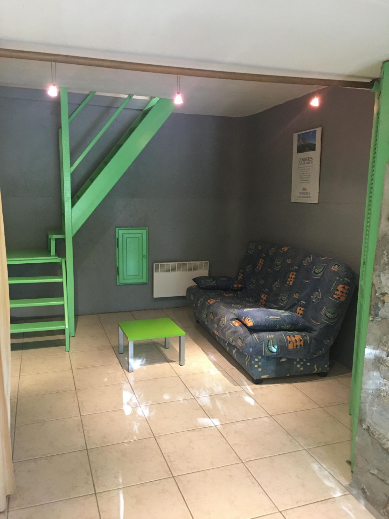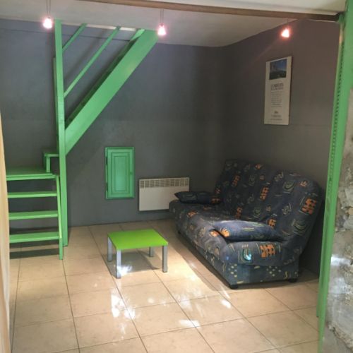 • un salon avec un canapé convertible 2 places (clic-clac), que l’on peut isoler grâce à la tenture