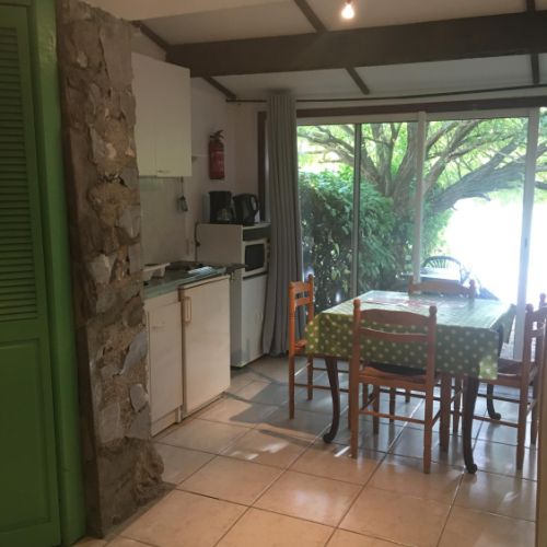Ce gite lumineux, simple et fonctionnel, ouvert par une large baie vitrée sur la terrasse, est une ancienne cuve à vin. Il est composé de 4 espaces sur 2 niveaux et d’un équipement complet.