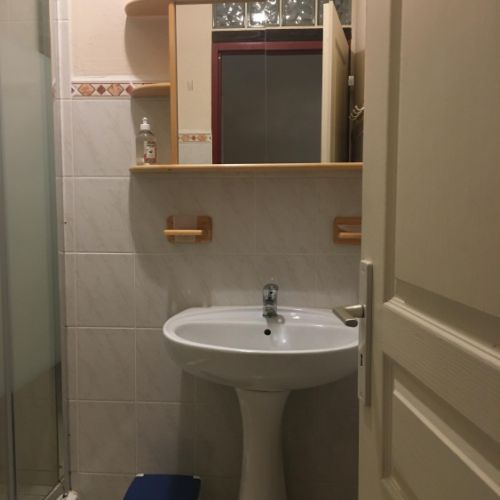 • une salle d'eau avec douche, lavabo, W.C