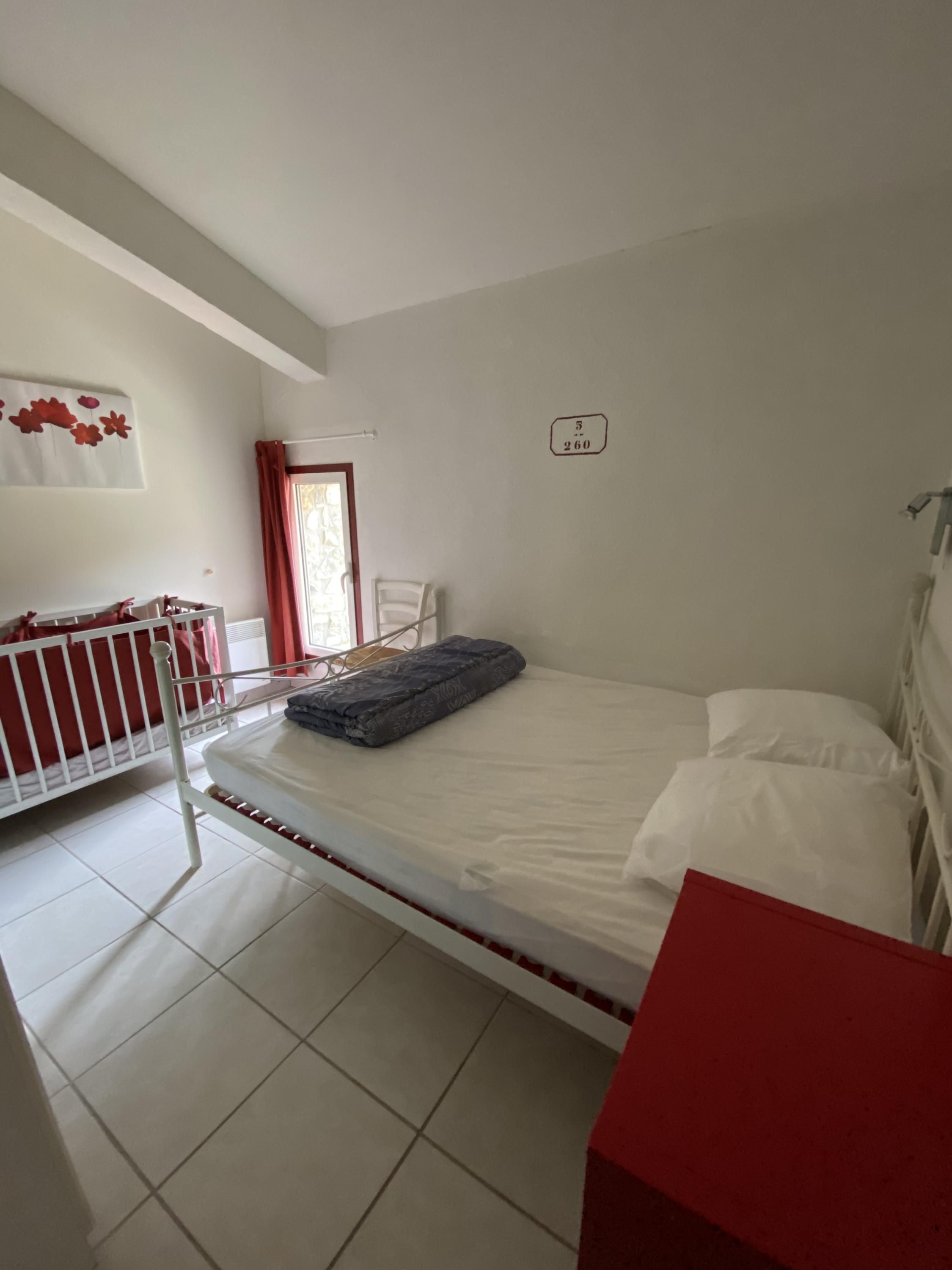 • 1 chambre avec un lit 2 places et un lit bébé
