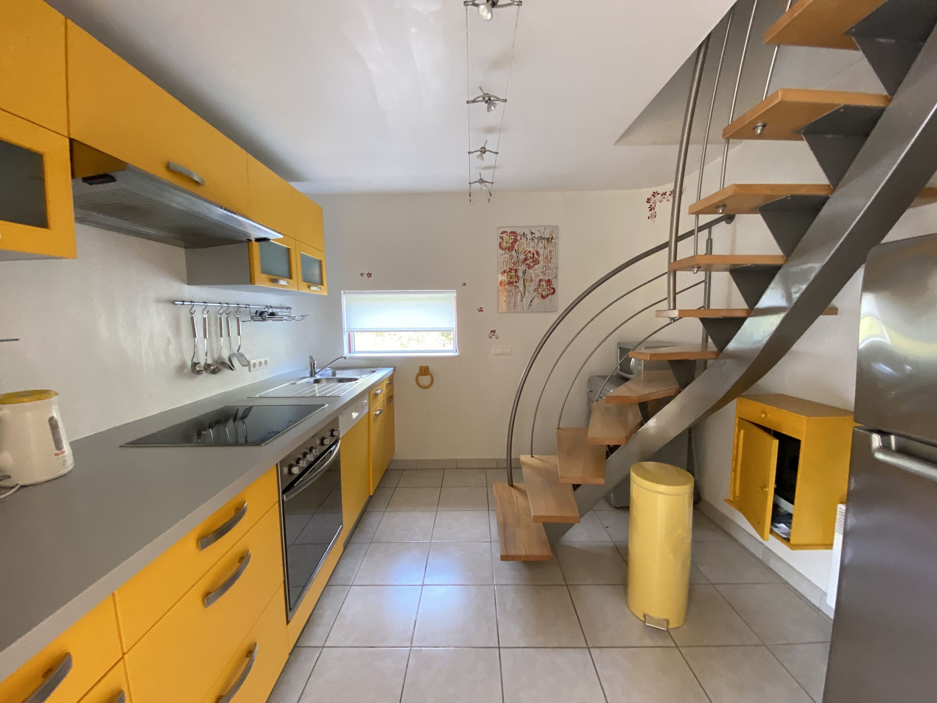 • une cuisine moderne et pratique, équipée avec un lave-vaisselle, une table de cuisson en vitro-céramique 4 feux, hotte, four multifonctions, micro-onde, grand réfrigérateur avec compartiment surgélation, bouilloire électrique, cafetière électrique, grille pain, vaisselle et ustensiles de cuisine....