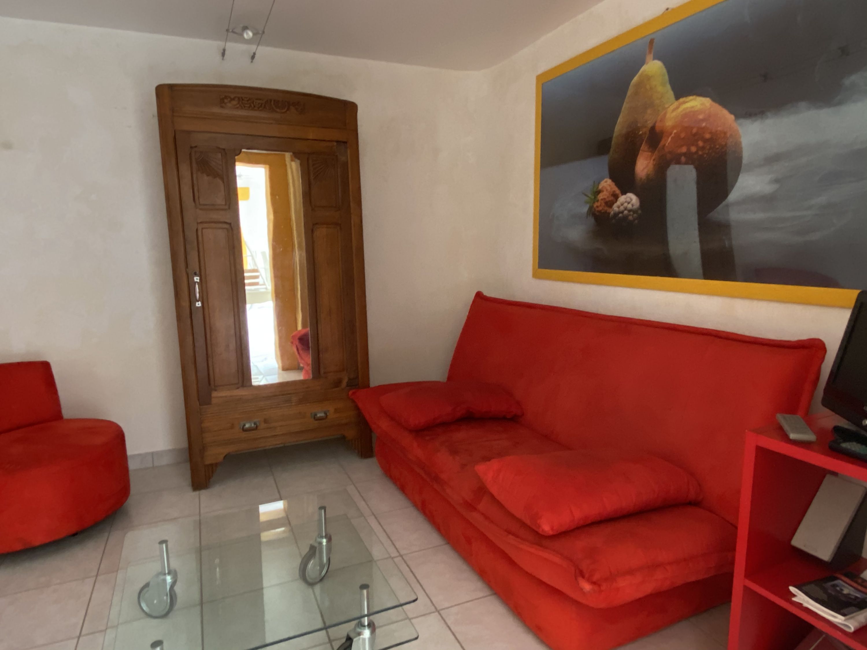 • un salon avec un canapé-lit de 2 places (130x190), une chaine Hi-Fi et un lecteur DVD. Une tenture permet de s’isoler.