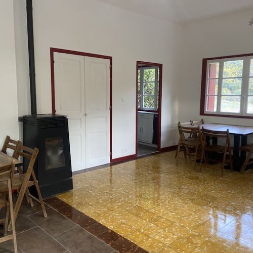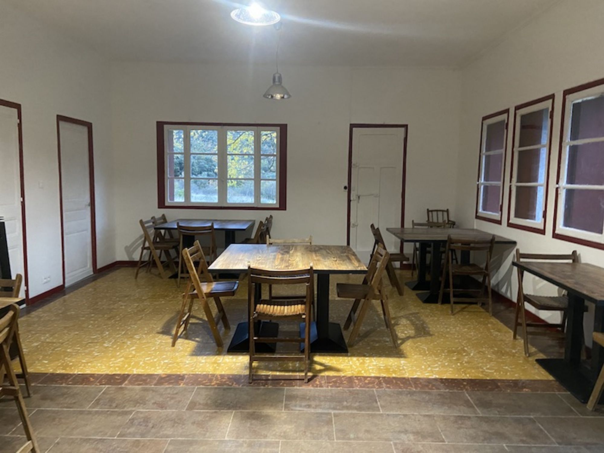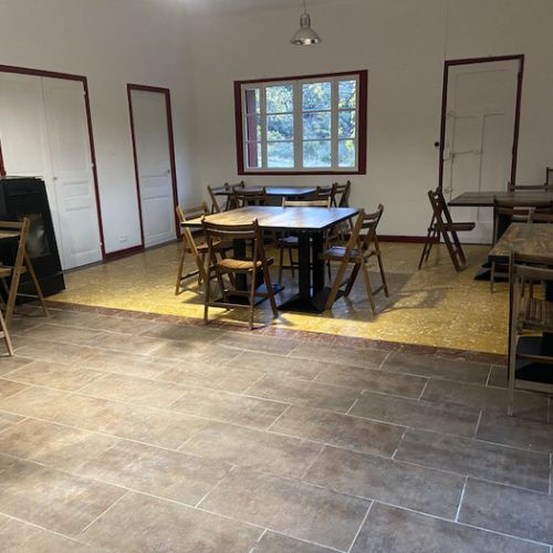 • la salle d'environ 45 m² est équipée pour recevoir jusqu’à 45 personnes : tables, chaises, vaisselle...